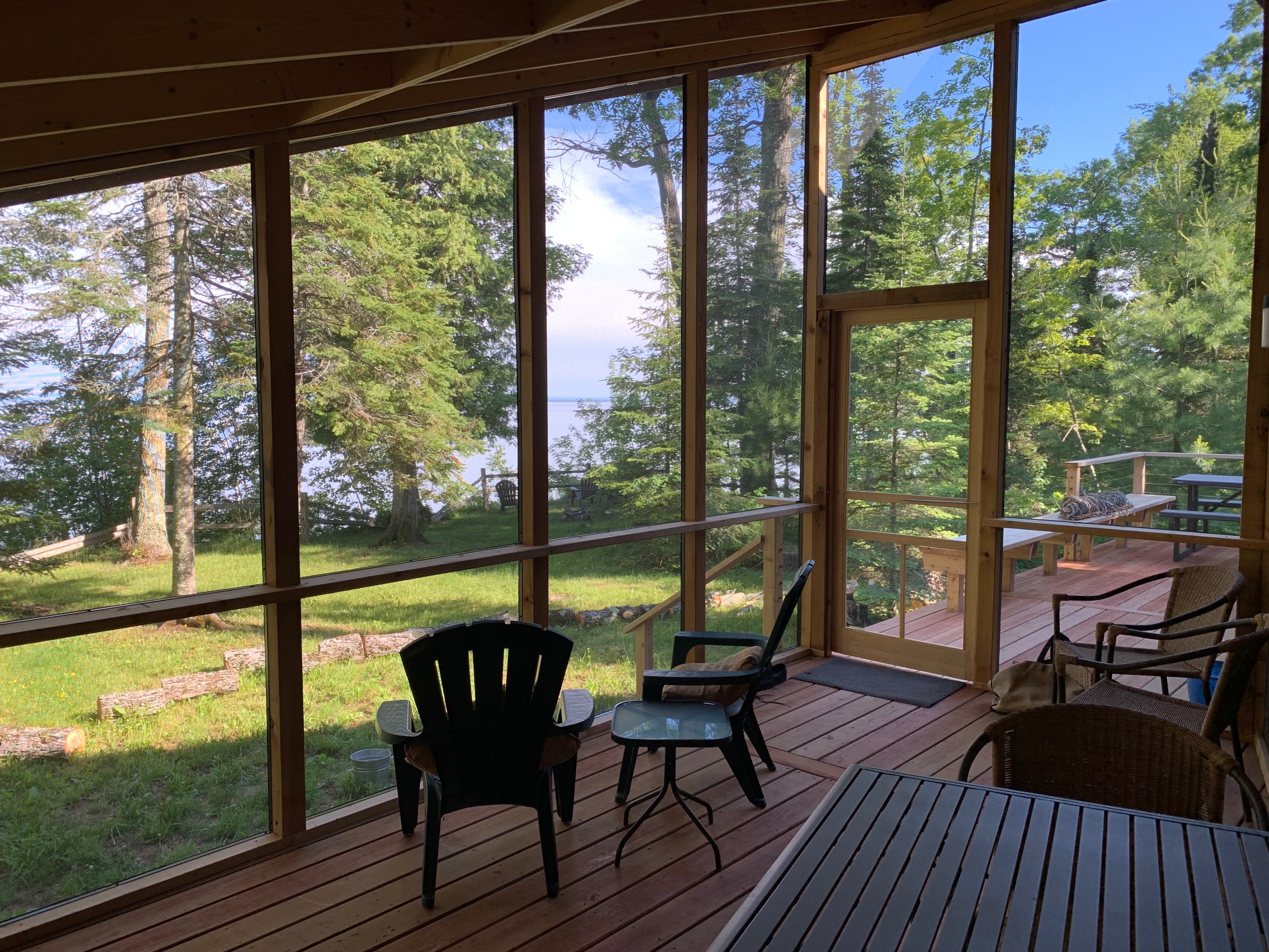 Blue Water Vista sleeps up to six in the quiet comfort of over two wooded acres on Madeline Island's South Shore. The home offers two bedrooms, two full baths, fireplace, screened porch, wrap-around deck, plus full kitchen, dining area and a commanding view of Lake Superior and surrounding Apostle Islands.